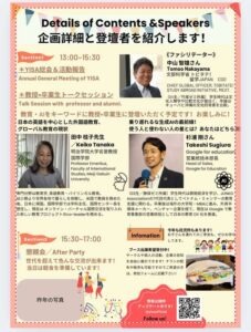 Reunion 2024 The annual International Studies Reunion will be held this year on December 7. This event brings together alumni, students, and faculty across generations for a unique chance to connect. With the agenda finalized, we're excited to share more details with you. We hope you’ll join us for this year’s International Studies Reunion 2024! Event Details: Date & Time: Saturday, December 7, 2024, 1:00 PM - 5:00 PM Format: Hybrid (Yokohama Campus & Zoom) You can join from home or abroad via Zoom! Partial attendance is welcome. Fee: Free Theme for 2024: Creating Connections for the Future Event Content [Part 1] 1:00 PM - 3:10 PM Speaker Sessions YISA […]